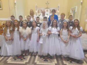 Congratulations to our First Holy Communion Class today, ye were just brilliant. Thank you to Ms Bonner, Ms Byrne, Fr John, the Choir, Mike, Teresa and all those involved in today’s ceremony.